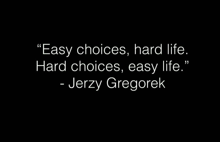 "Простые решения - трудная жизнь. Трудные решения - легкая жизнь" Jerzy Gregorek, современный стоик.
